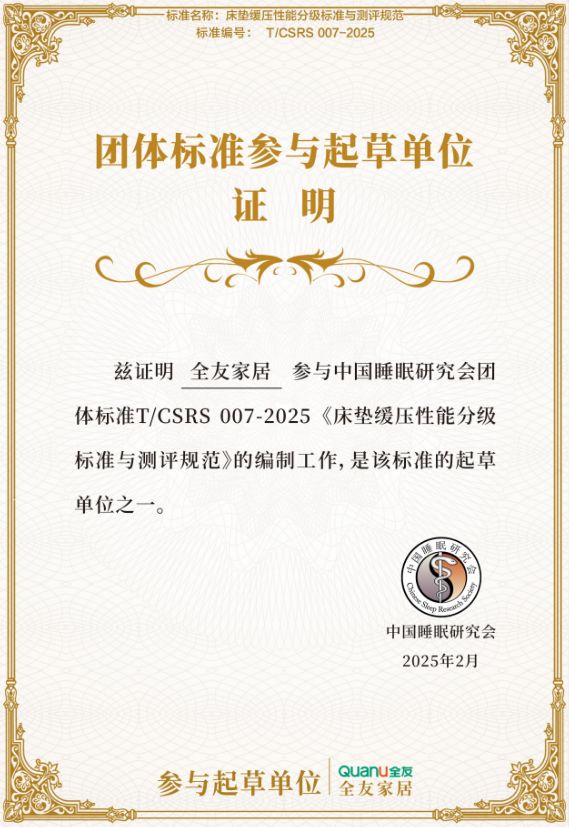 這些數(shù)據(jù)背后,暴露出傳統(tǒng)睡眠解決方案的結構性矛盾——當個性化需求遭遇標準化產品設計,大多數(shù)人不得不通過分房睡或犧牲舒適度來維持親密關系。全友家居洞察到市面上傳統(tǒng)床墊軟硬度較為單一,難以滿足女生與男生之間存在的差異化睡眠需求,特別是對于夫妻、情侶以及子女同床的情況,左右分區(qū)床墊的重要性日益凸顯。 為進一步科學規(guī)范床墊性能,全友聯(lián)合中國睡眠研究會,共同起草制訂了《床墊緩壓性能分級標準與測評規(guī)范》,以科學分級重新構建深度睡眠的理論基礎,為床墊產品的研發(fā)和消費者的選擇提供更具科學性的依據(jù),推動整個睡眠行業(yè)向更健康、更科學的方向發(fā)展。