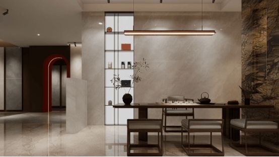 空間賞析 SPACE TO ENJOY 設(shè)計(jì)師團(tuán)隊(duì)深度洞察流行趨勢(shì),將最具市場(chǎng)前瞻性的大紋理產(chǎn)品陳列呈現(xiàn)于展廳核心展區(qū),通過專業(yè)燈光設(shè)計(jì)與場(chǎng)景化鋪貼,讓每處紋理都成為空間的視覺焦點(diǎn)。